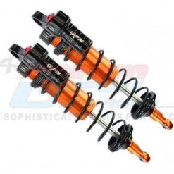 These are the GPM Aluminum 6061-T6 Front L-shape Adjustable Spring Dampers for Traxxas Sledge (Orange)