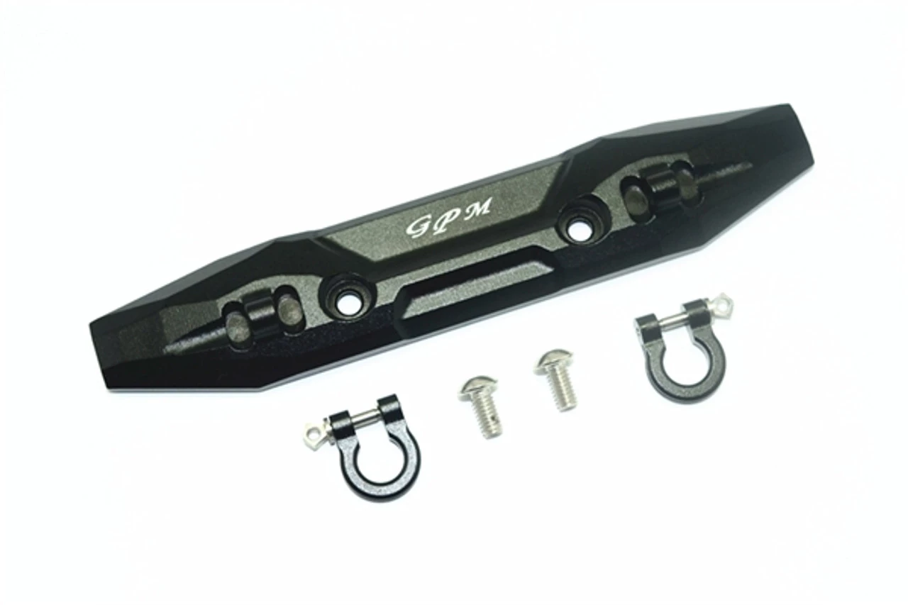 This is the GPM Racing Black Aluminum Front Bumper with D-Rings for the Traxxas 1/10 E-Revo 2.0 VXL, Revo 3.3 nitro, as well as previous 1/10 E-Revo trucks. Whether you’re building a realistic monster truck or the ultimate off-road basher, these look incredible! Made of 6061-T6 aluminum with an anodized finish, they are built to last too.