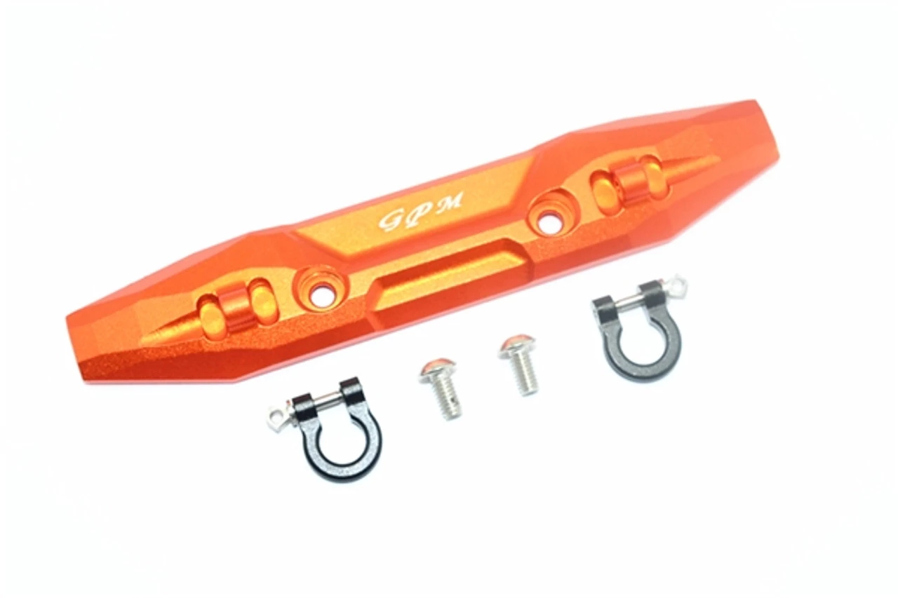 This is the GPM Racing Orange Aluminum Front Bumper with D-Rings for the Traxxas 1/10 E-Revo 2.0 VXL, Revo 3.3 nitro, as well as previous 1/10 E-Revo trucks. Whether you’re building a realistic monster truck or the ultimate off-road basher, these look incredible! Made of 6061-T6 aluminum with an anodized finish, they are built to last too.
