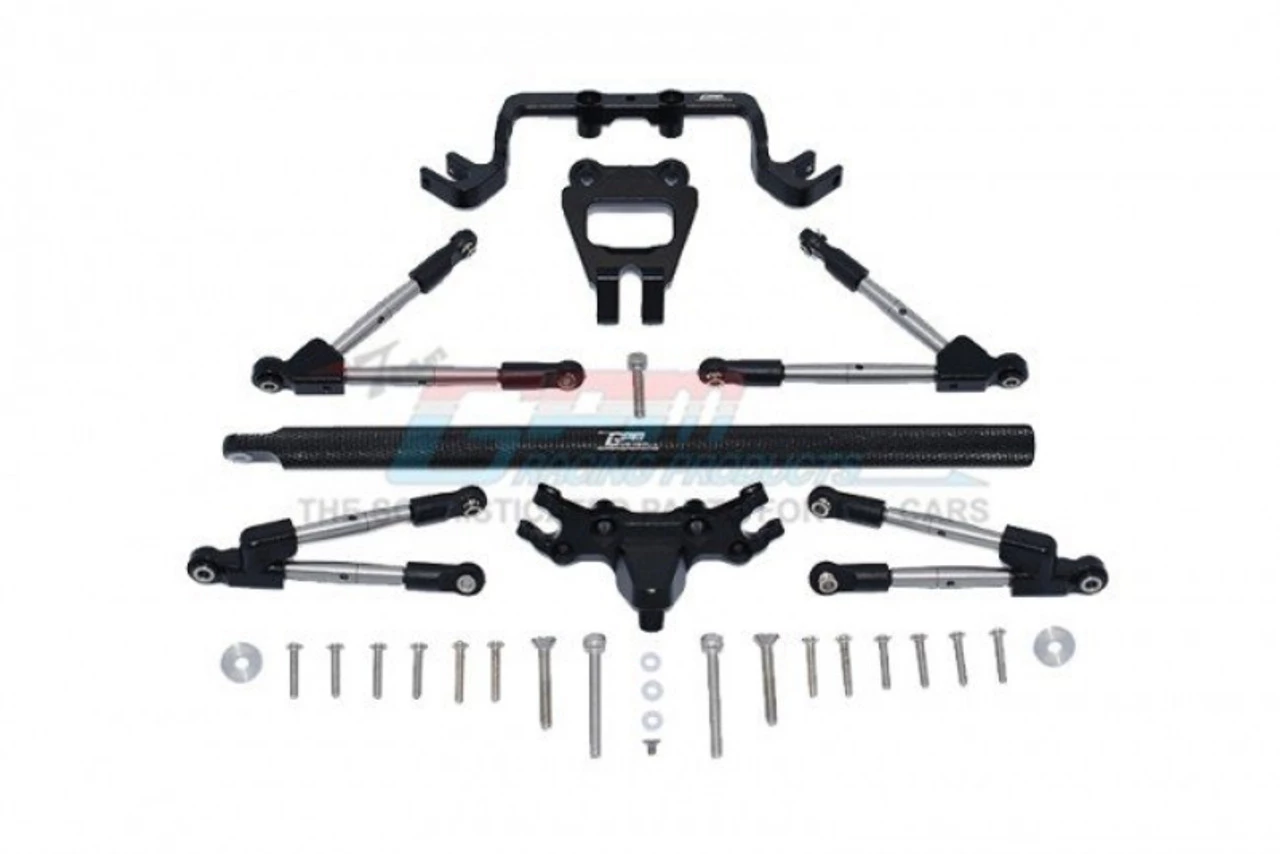 These are the GPM Aluminum Hoss 4×4 Front and Rear Tie Rods With Stabilizer and Center Brace (Black)
