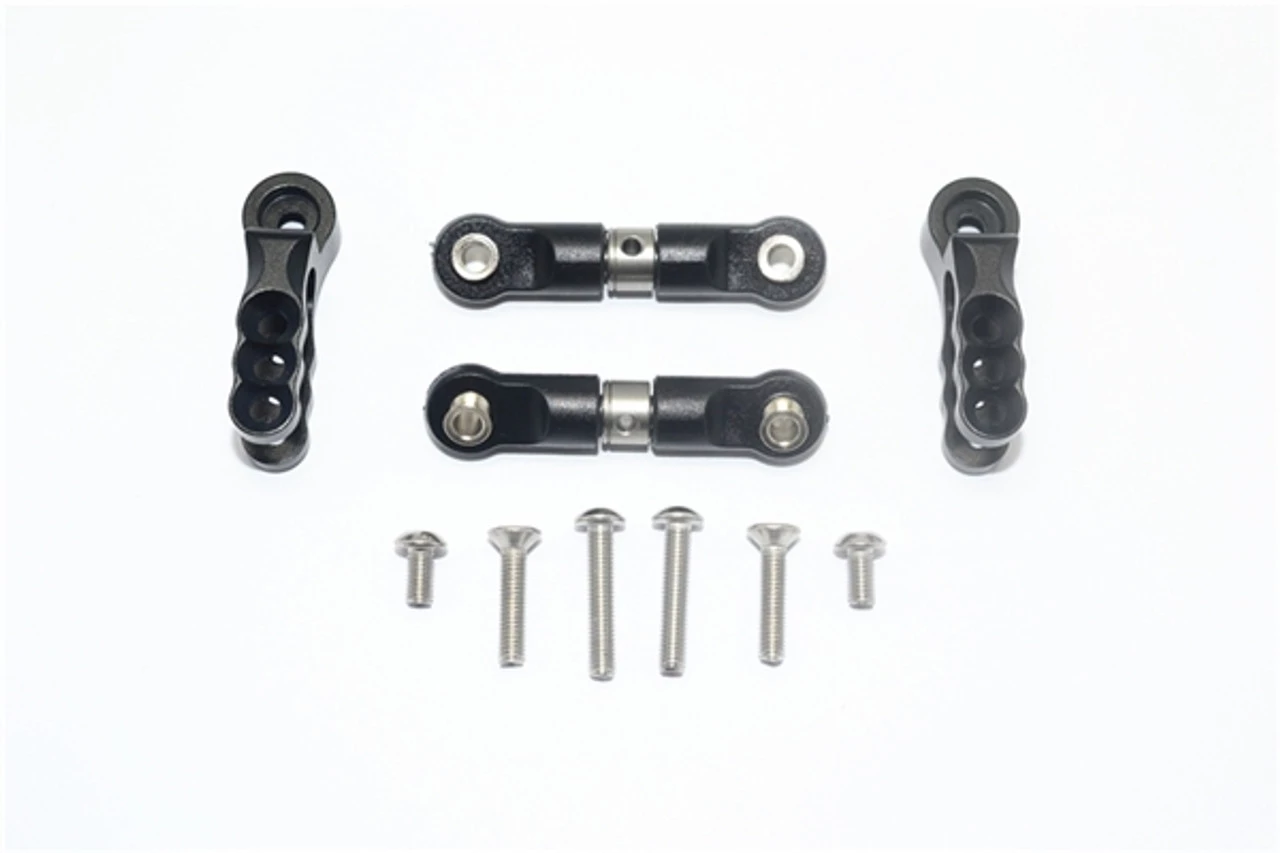 These are the the GPM Racing Black Aluminum 25T Spline Servo Horns with Adjustable Stainless Steel Links for the Traxxas 1/10 E-Revo 2.0 VXL Brushless, 1/10 E-Revo Brushed & Brushless, and the 1/10 Summit trucks. Made of 6061-T6 aluminum and anodized for a beautiful finish, these arms offer improved strength and great looks.