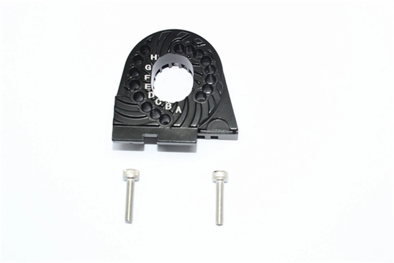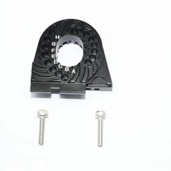 This is the GPM Racing Black Aluminum Double-Sided Heatsink Motor Mount for Traxxas TRX-4 scale trucks and rock crawlers. Made of 6061-T6 aluminum with machined heatsink fins on both sides, this heavy-duty motor mount helps pull heat from the motor and dissipate it much better than the stock plastic mount. It still features labeled motor mount holes for simple gear mesh settings. Improve motor life by keeping it cool!