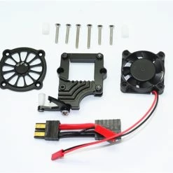 This is the GPM Racing Black Aluminum ESC Cooling Fan and EZ On/Off Switch for Traxxas TRX-4 scale trail trucks and rock crawlers. These are a great addition to the TRX-4, pulling unwanted heat from the ESC and providing an easy to reach on/off lever to activate the ESC button without removing the body. These feature an in-line wiring harness for quick installation.