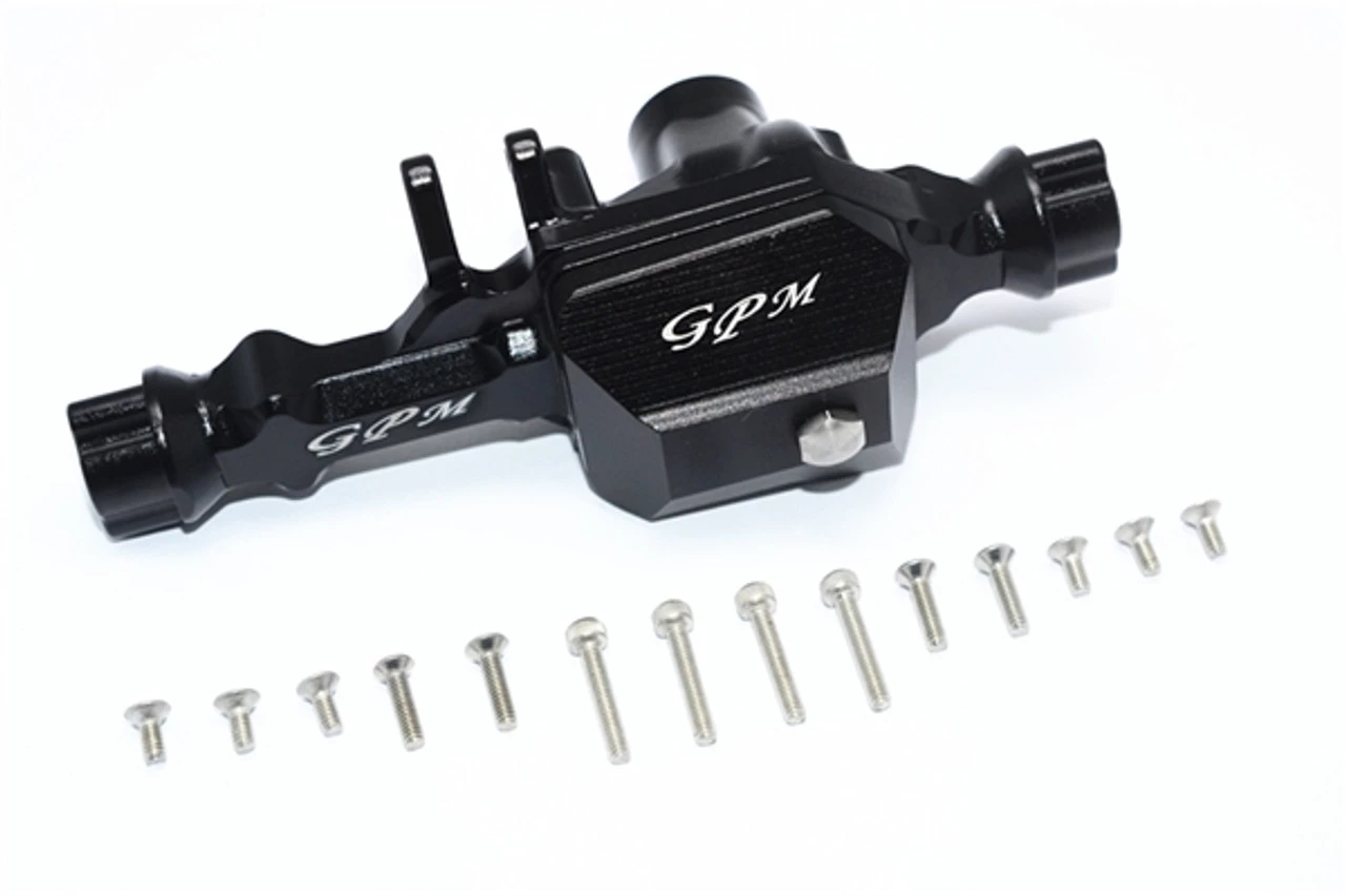 This is the GPM Racing Black Aluminum Front Axle Housing and Gearbox for Traxxas TRX-4 Trucks. Made of 6061-T6 aluminum with an anodized finish, this housing looks awesome and is a super durable upgrade. Full stainless steel hardware is also included.