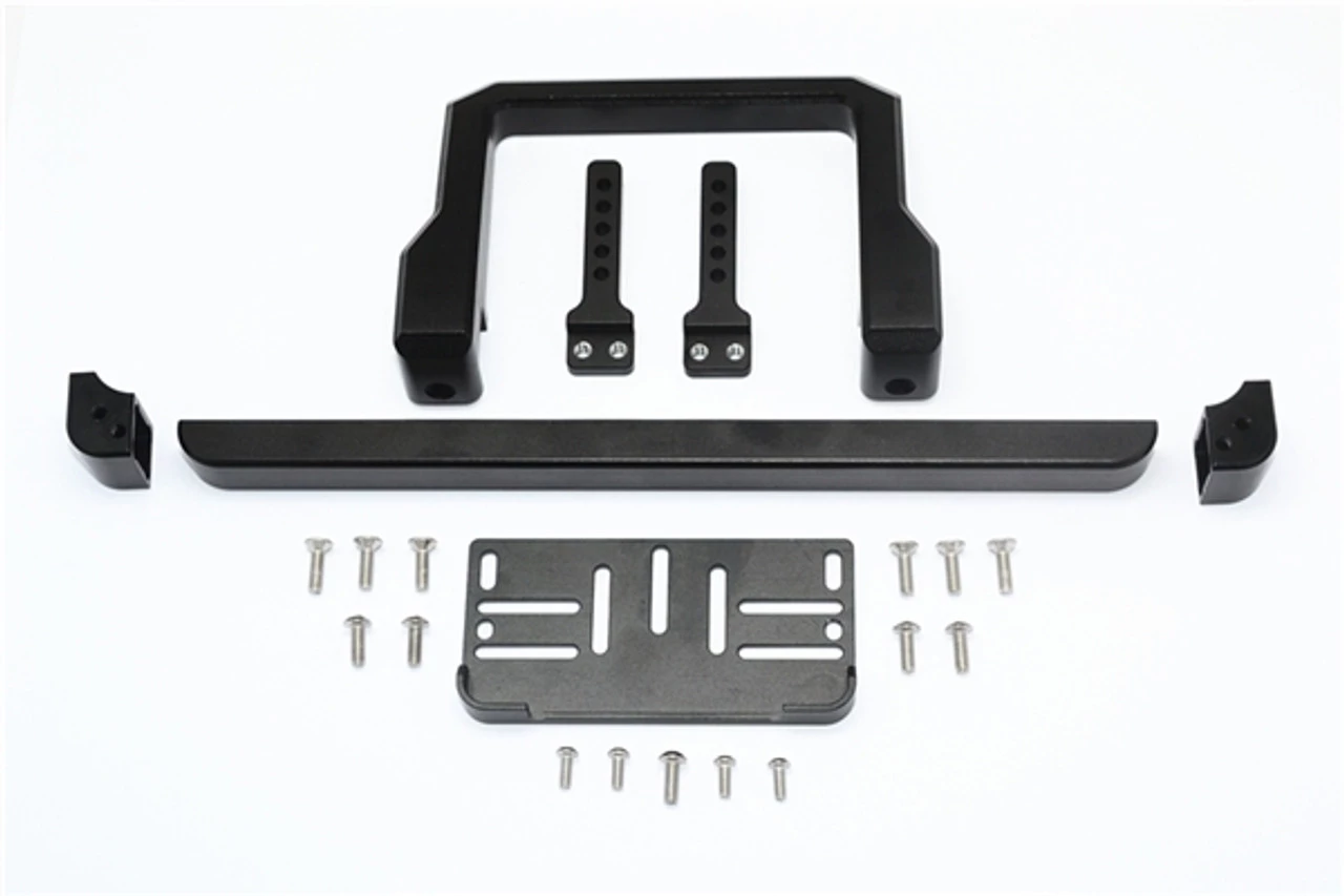 This is the GPM Racing Black Aluminum Front Brushguard Bumper for Traxxas TRX-4 Land Rover scale and trail trucks. Made of 6061-T6 aluminum with an anodized finish, these are durable, look great, and give the TRX-4 an incredibly realistic front end. These are a must on scale builds!