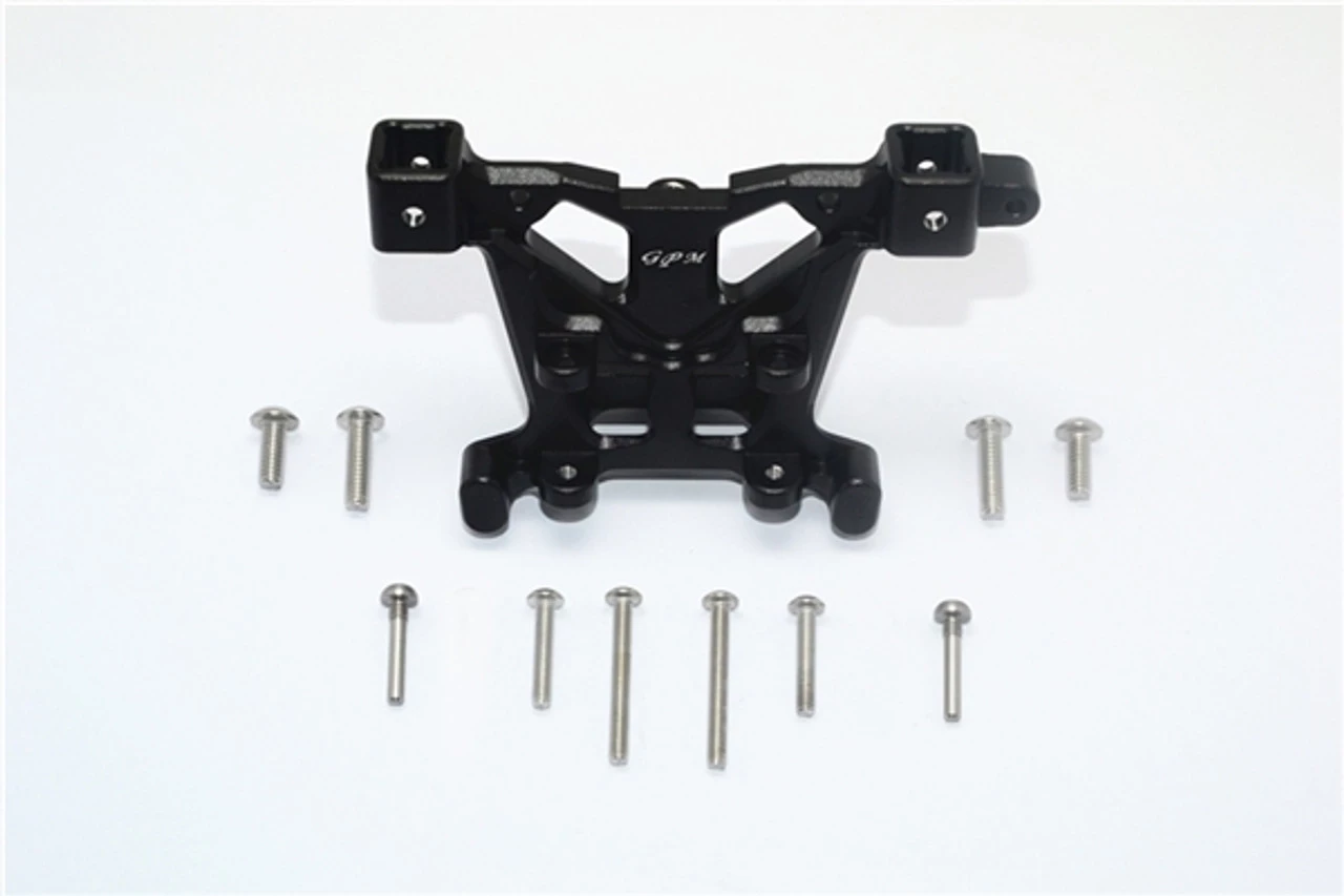 This is the GPM Racing Black Aluminum Rear Body Post Mount Set for Traxxas 1/10 E-Revo 2.0, E-Revo Brushed & Brushless, Revo 3.3, Slayer, and Summit trucks. Made of 6061-T6 aluminum, this mount is super tough and looks stunning with its anodized finish.