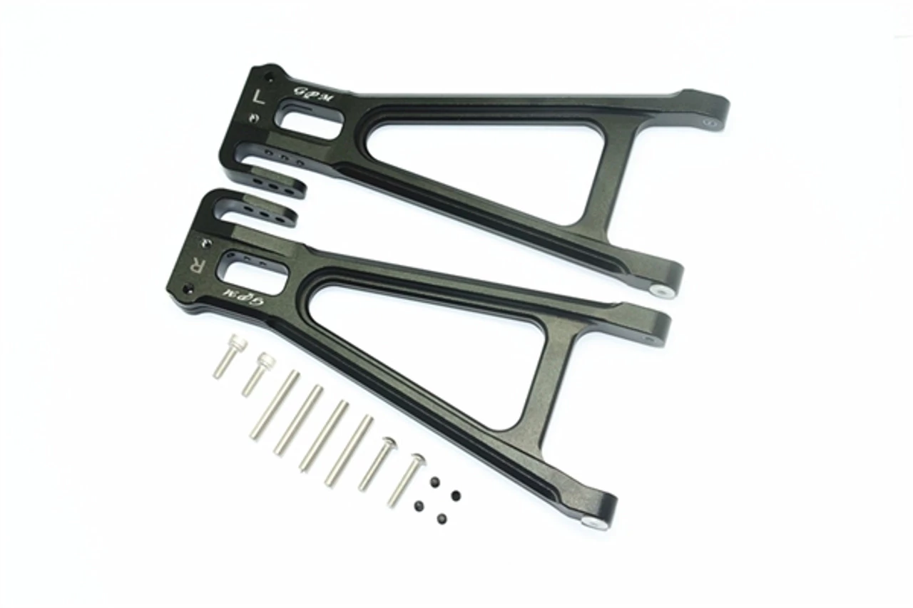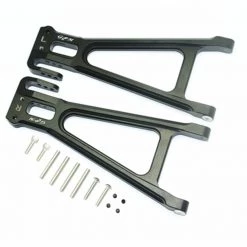 These are the GPM Racing Black Aluminum Rear Lower Suspension Arms with Hinge Pins for the Traxxas E-Revo 2.0 VXL Brushless trucks. Made from 6061-T6 aluminum for strength and durability, then anodized for a stunning finish, these arms are a great way to set your truck apart.
