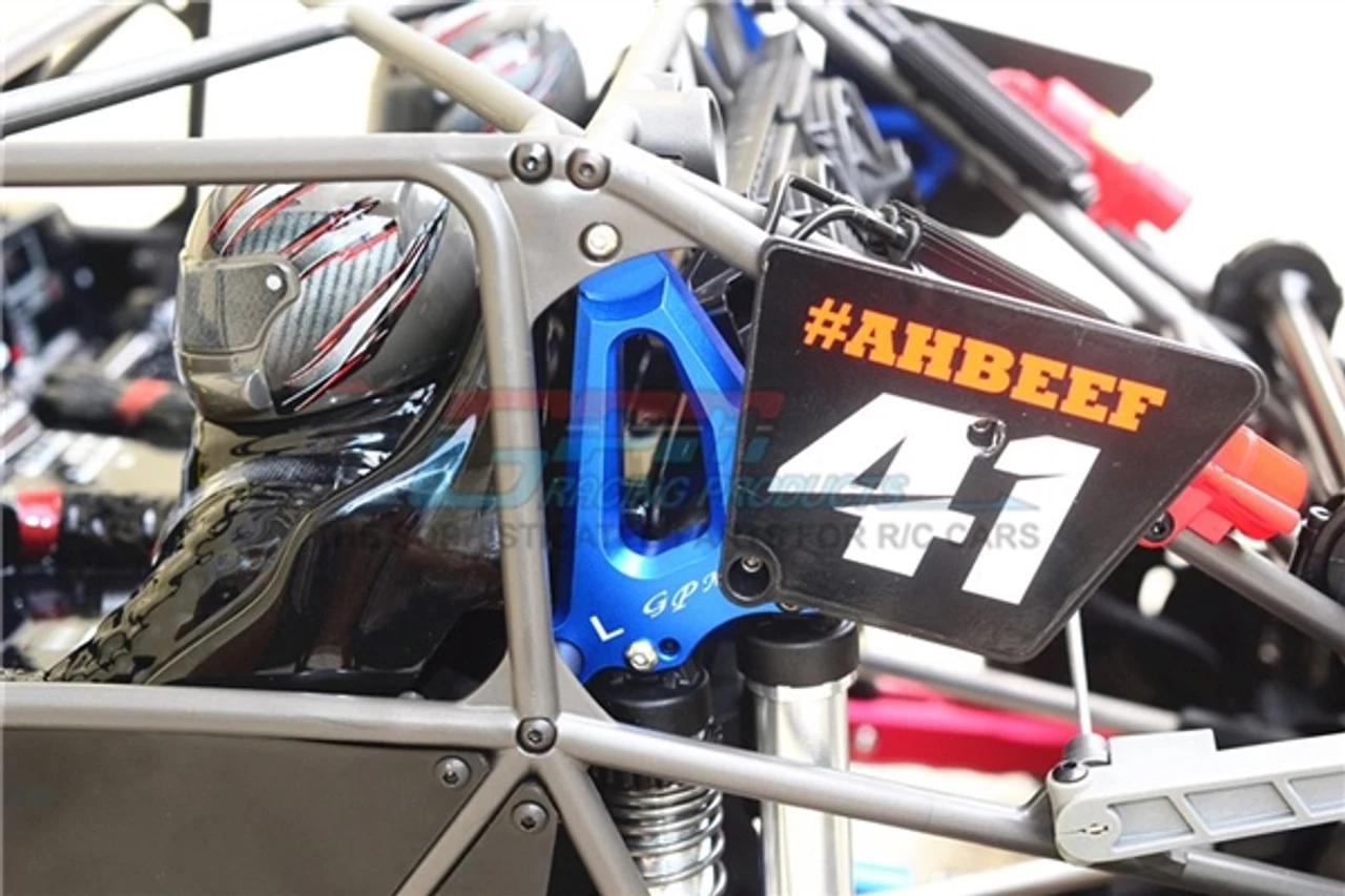 These are the GPM Racing Black Aluminum Rear Shock Mounts for Traxxas Unlimited Desert Racer trucks. Made of 6061-T6 aluminum, these are super durable, and look fantastic installed with their anodized finish. These make a great addition to the UDR. Stainless steel mounting hardware is included.