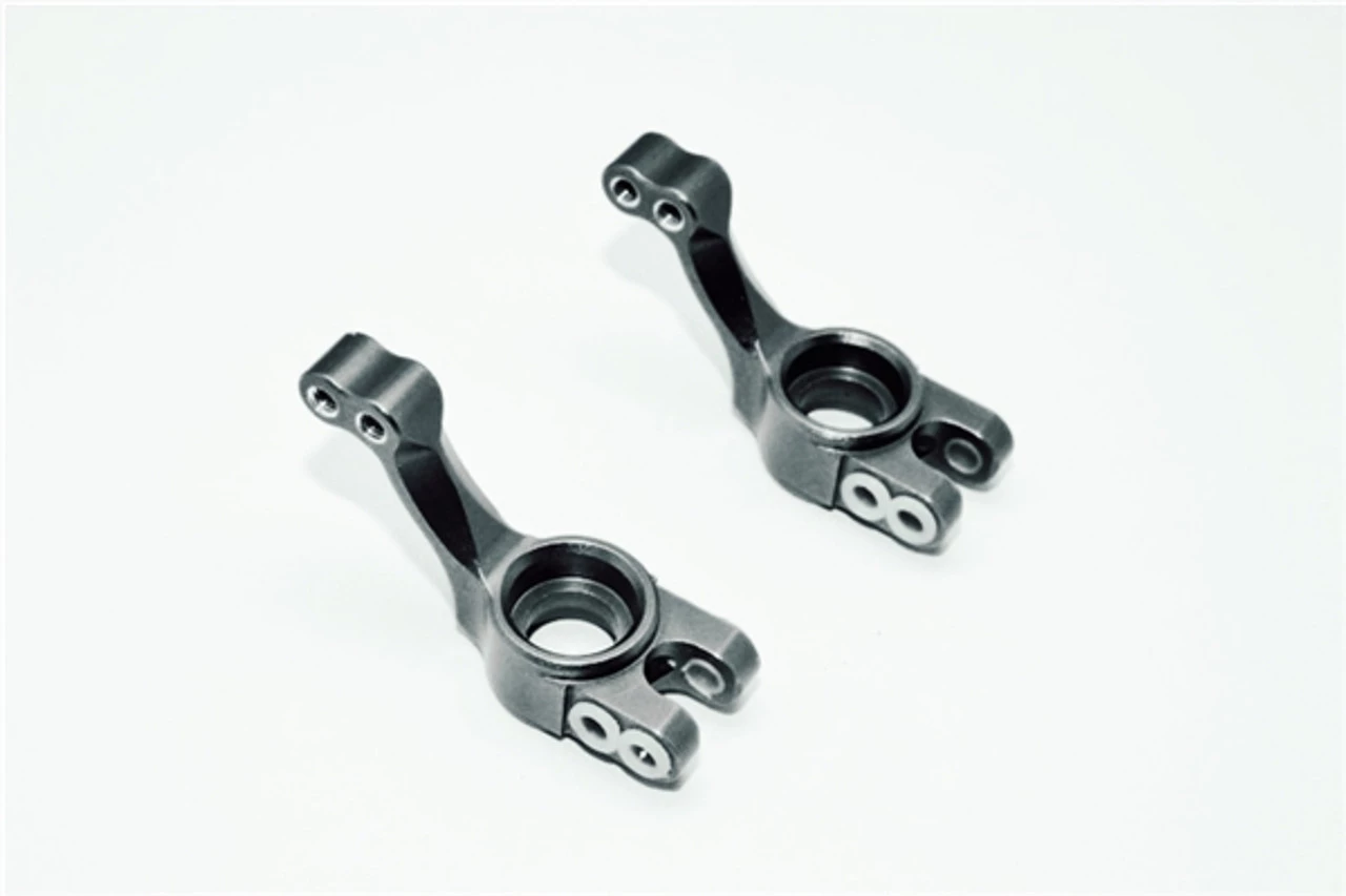 These are the GPM Racing Black Aluminum Rear Stub Axle Carriers for Traxxas electric Slash 2WD, Rustler 2WD, Stampede 2WD, and Bandit vehicles. These are made of 6061-T6 aluminum and anodized to finish them off. They are durable and look great!