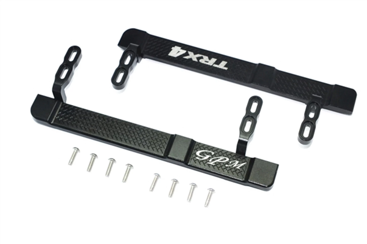 These are the GPM Racing Black Aluminum Side Step Rock Sliders for Traxxas TRX-4 scale trucks and rock crawlers. These are made of 6061-T6 for durability and awesome scale appearance. They feature a textured surface for an even more realistic look. Stainless steel mounting hardware is included.