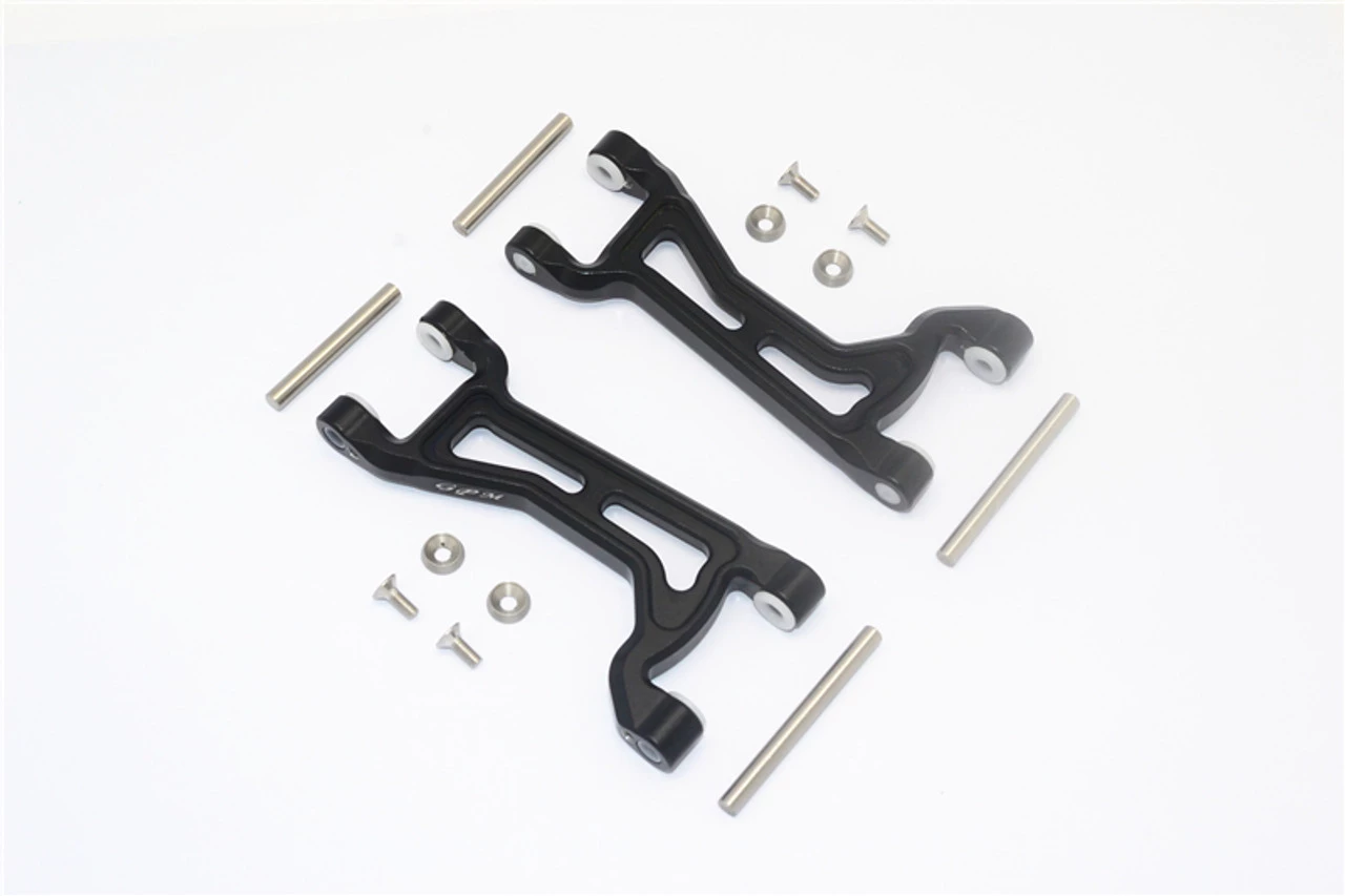 These are the GPM Racing Black Aluminum Upper Suspension Arms for the front or rear of the Traxxas 1/10 Maxx 4S trucks. Made of 6061 T6 aluminum with an anodized finish, these are a great way to dress up your truck and improve durability. Stainless steel hinge pins are included.
