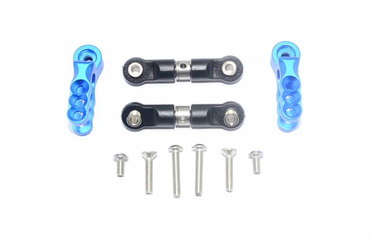 These are the the GPM Racing Blue Aluminum 25T Spline Servo Horns with Adjustable Stainless Steel Links for the Traxxas 1/10 E-Revo 2.0 VXL Brushless, 1/10 E-Revo Brushed & Brushless, and the 1/10 Summit trucks. Made of 6061-T6 aluminum and anodized for a beautiful finish, these arms offer improved strength and great looks.