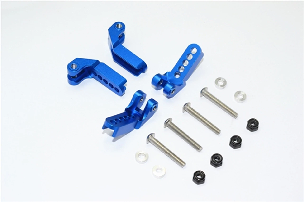 These are the GPM Racing Blue Aluminum Adjustable Front and Rear Shock Mounts for Traxxas TRX-4 scale trail trucks and rock crawlers. Made of 6061-T6 aluminum with an anodized finish, these are durable and look great. These will lift the chassis from 6mm to 18mm depending on the shock mount hole used. Hardware is included