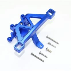 This is the GPM Racing Blue Aluminum Front Body Mount Set for Traxxas 1/10 E-Revo 2.0, E-Revo Brushed & Brushless, Revo 3.3, Slayer, and Summit trucks. Made of 6061-T6 aluminum, this mount is super tough and looks stunning with its anodized finish.