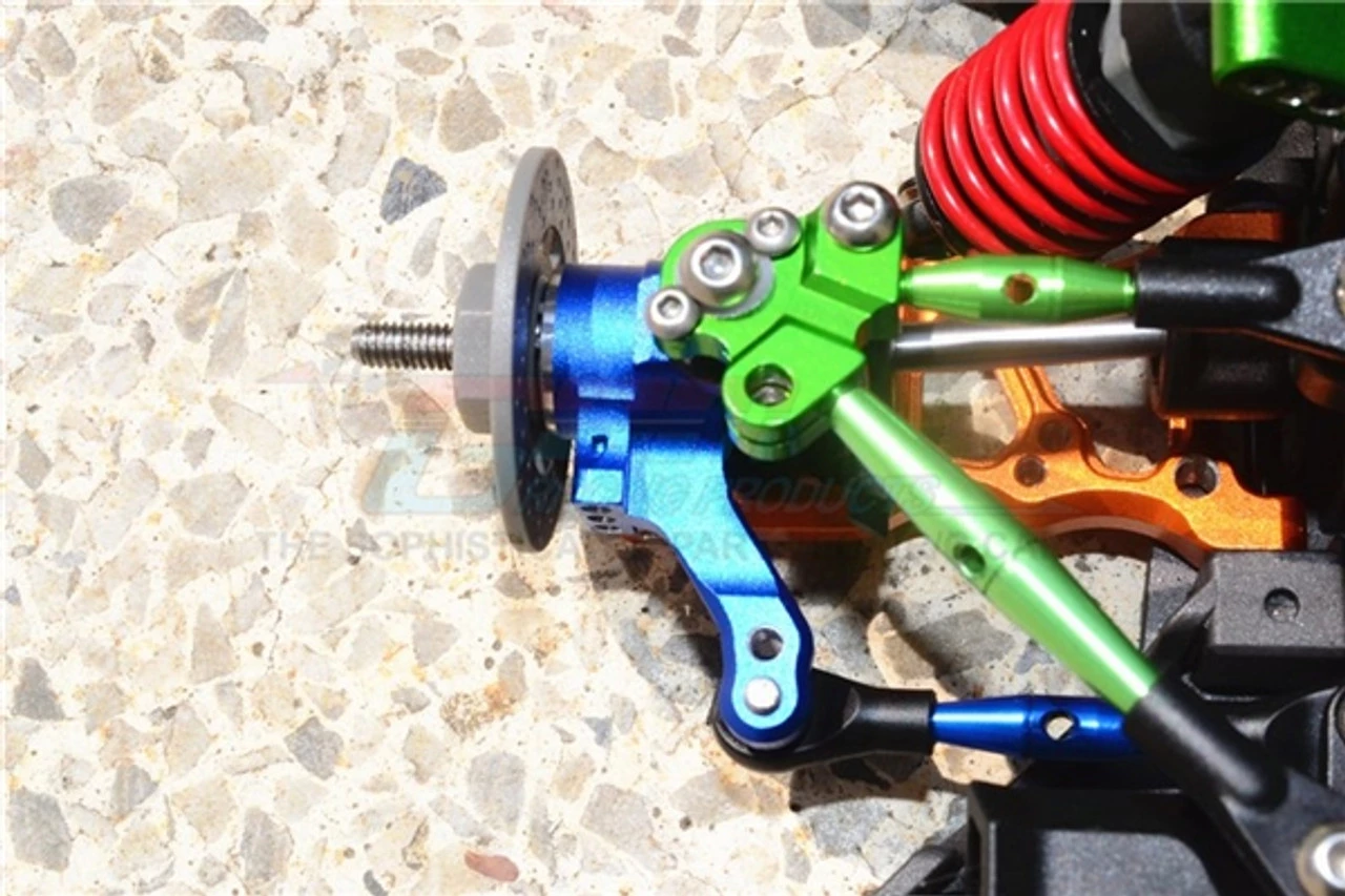These are the GPM Racing Blue Aluminum Front Steering Blocks for Traxxas 4-Tec 2.0 cars. These are machined from 6061-T6 aluminum for strength and durability, then anodized for a fantastic appearance.