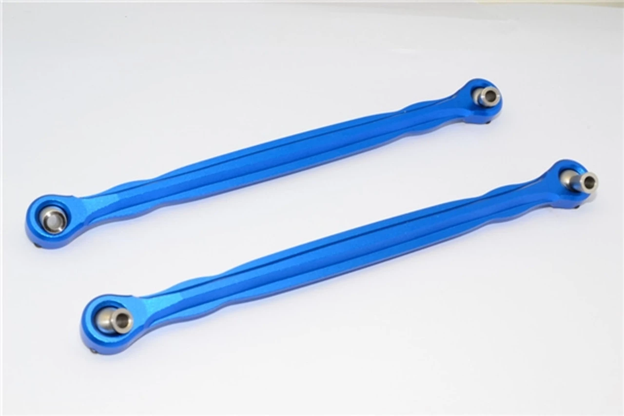 These are the GPM Racing Blue Aluminum Front Steering Toe Links for Traxxas X-Maxx trucks. Made of 6061-T6 aluminum, these are much more durable than stock. They are anodized for a fantastic look. Perfect for bashers and show trucks!