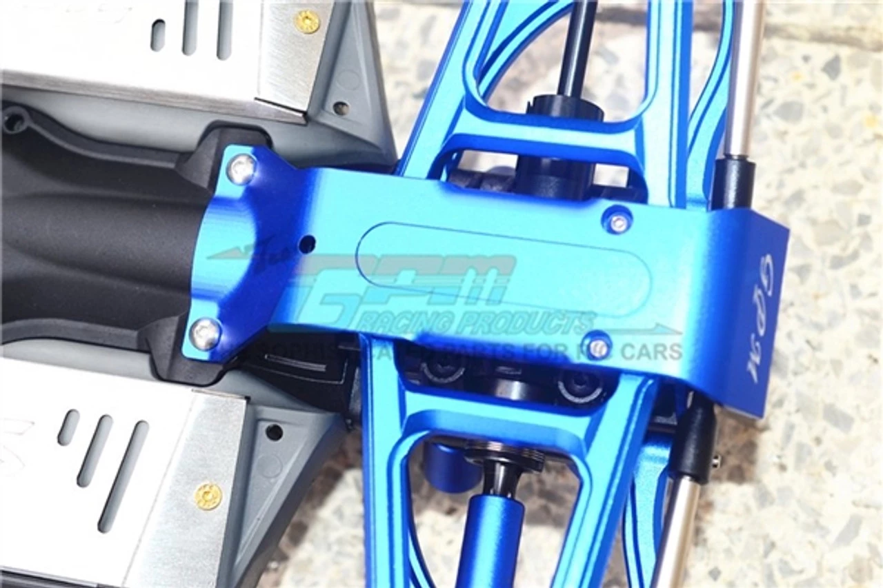 This is the GPM Racing Blue Aluminum Rear Skid Plate for the Traxxas 1/10 E-Revo 2.0 VXL Brushless trucks. Made of 6061-T6 aluminum and finished in anodized coloring, these are super durable and help make your truck stand out! Stainless steel mounting screws are also included.