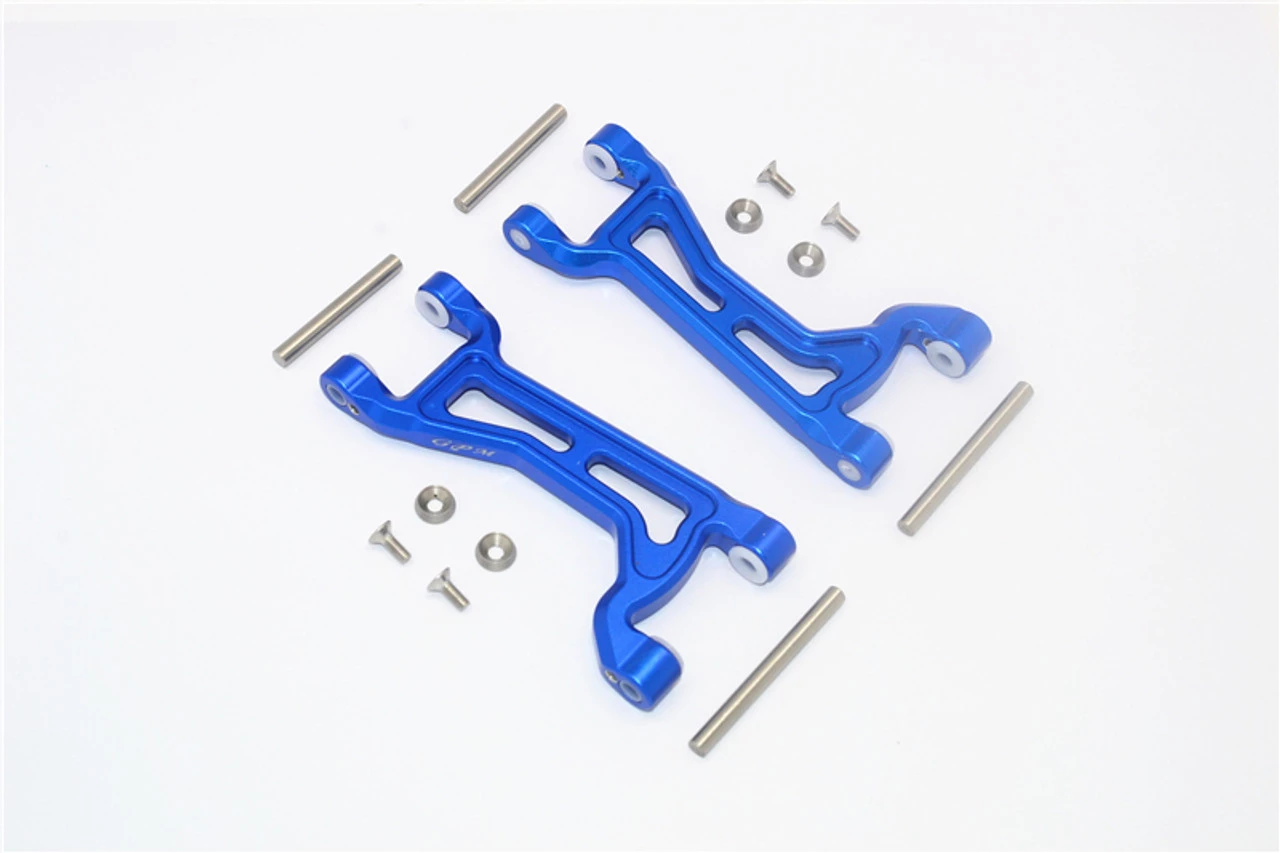 These are the GPM Racing Blue Aluminum Upper Suspension Arms for the front or rear of the Traxxas 1/10 Maxx 4S trucks. Made of 6061 T6 aluminum with an anodized finish, these are a great way to dress up your truck and improve durability. Stainless steel hinge pins are included.
