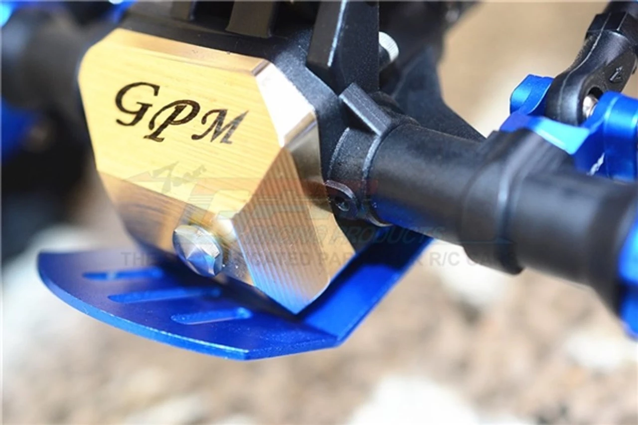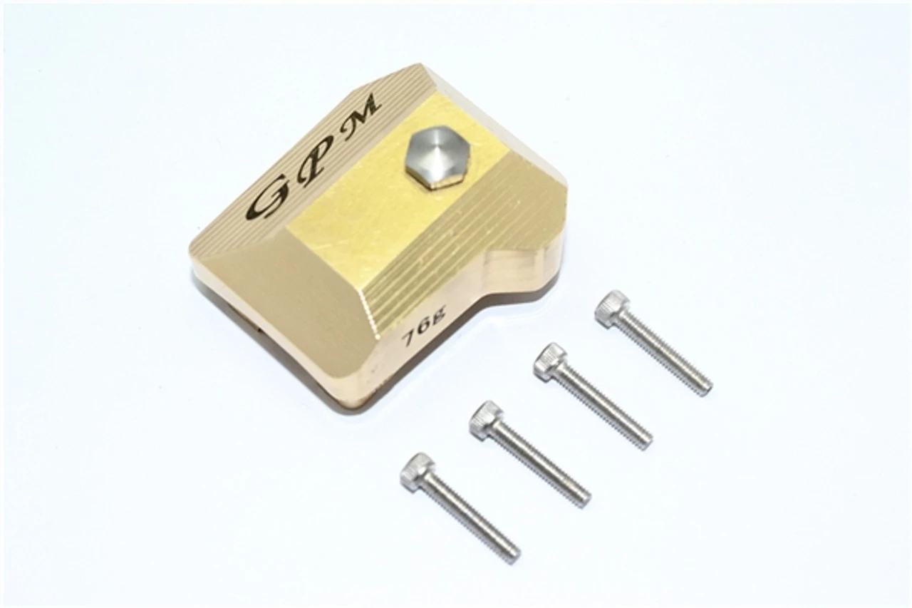 This is the GPM Racing Heavy Brass Front/Rear Gearbox Cover for Traxxas TRX-4 scale and trail rock crawler trucks. This will fit the front or rear. It weighs in at 76 grams, helping provide weight low on the truck for improved stability. It features an oil fill plug for convenience and added detail.