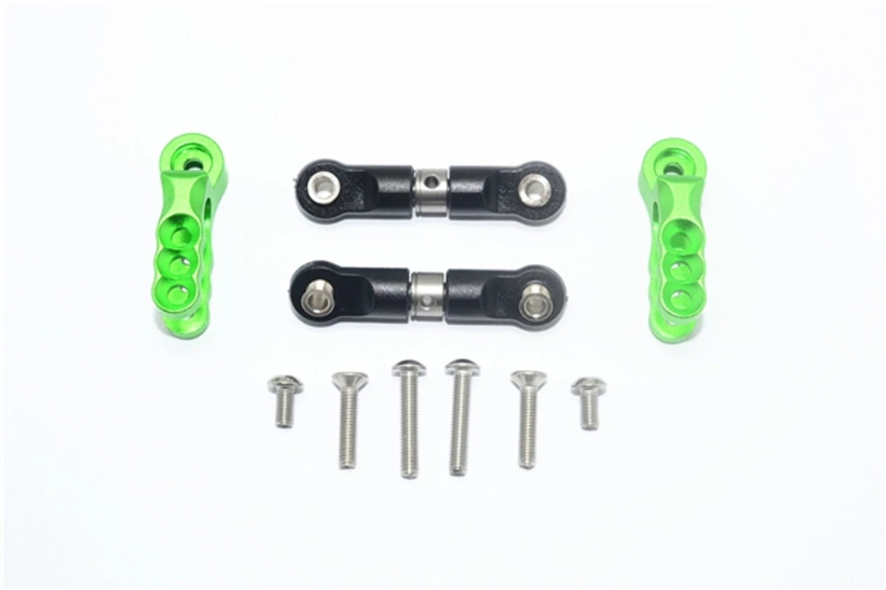 These are the the GPM Racing Green Aluminum 25T Spline Servo Horns with Adjustable Stainless Steel Links for the Traxxas 1/10 E-Revo 2.0 VXL Brushless, 1/10 E-Revo Brushed & Brushless, and the 1/10 Summit trucks. Made of 6061-T6 aluminum and anodized for a beautiful finish, these arms offer improved strength and great looks.