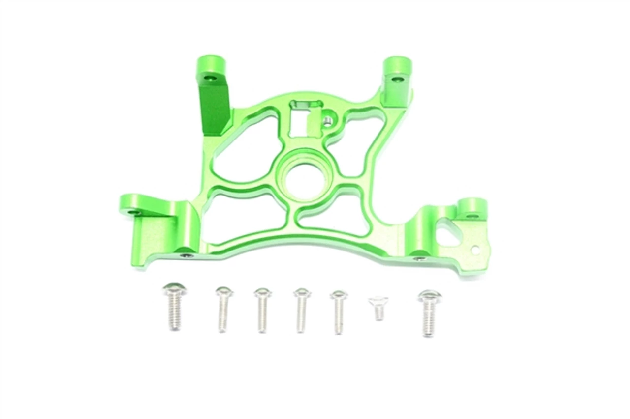 This is the GPM Racing Green Aluminum Motor Mount for use in Traxxas Rustler 4×4 and Slash 4×4 low-CG chassis trucks. This will also fit the Traxxas 1/10 Rally cars. Made of 6061-T6 aluminum, this reduces flex and looks great. Stainless steel hardware is also included.