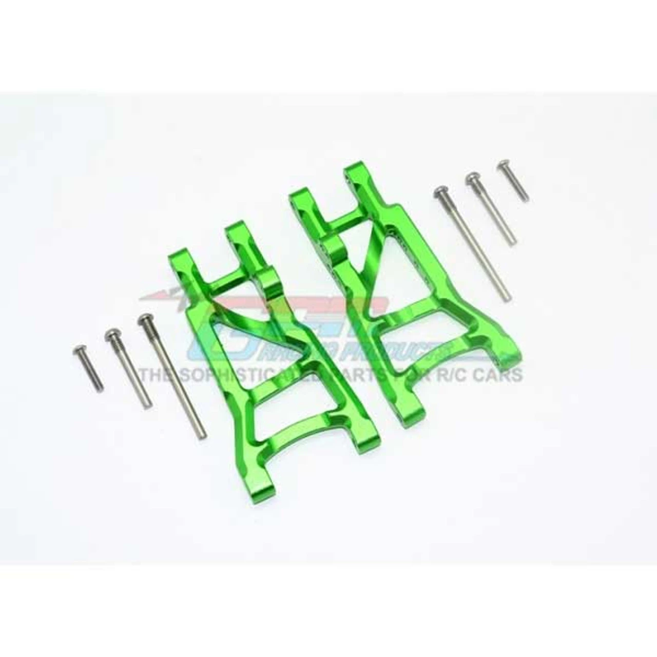 These are the GPM Racing Green Aluminum Rear Suspension Arms for Traxxas 2WD Slash electric trucks, Nitro Rustler, Nitro Slash, and Nitro Stampede. Made from 6061-T6 aluminum with an anodized finish, these look fantastic and improve durability over stock. Mounting hardware is included.