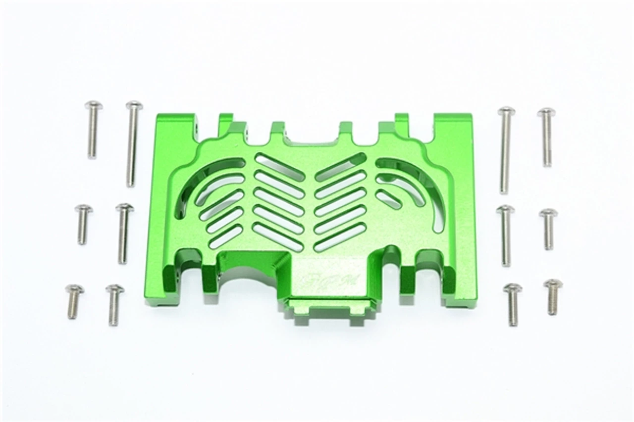 This is the GPM Racing Green Aluminum Lower Gearbox/Transmission Skid Plate for Traxxas TRX-4 scale trail trucks and rock crawlers. Made of 6061-T6 aluminum, these help protect the bottom of the center gearbox in even the roughest terrain. Stainless steel hardware is included.