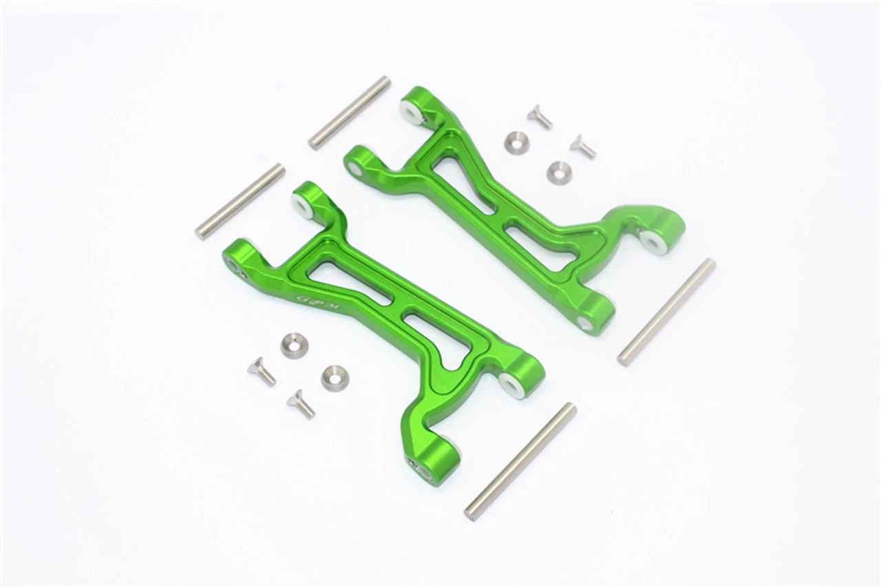 These are the GPM Racing Green Aluminum Upper Suspension Arms for the front or rear of the Traxxas 1/10 Maxx 4S trucks. Made of 6061 T6 aluminum with an anodized finish, these are a great way to dress up your truck and improve durability. Stainless steel hinge pins are included.