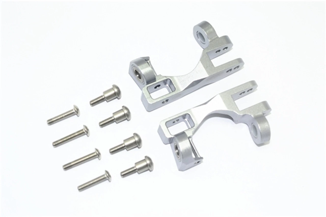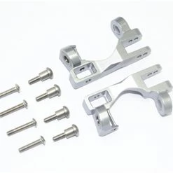 These are the GPM Racing Gunmetal Aluminum Front Caster Blocks for Traxxas 1/10 Slash 4×4, Rustler 4×4, Stampede 4×4, Rally, and XO-1 vehicles. Made of 6061-T6 aluminum and anodized for a spectacular finish, these feature bearing-supported kingpins for smooth steering. These help tighten up the front end, while looking great too.