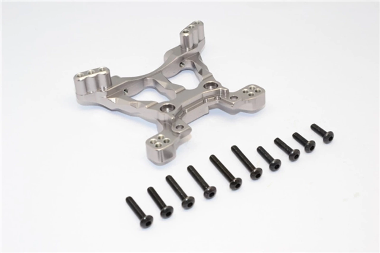 This is the GPM Racing Gunmetal Aluminum Front Shock Tower for Traxxas 1/10 Slash 4×4, Stampede 4×4, Rally, and Telluride vehicles. Made of 6061-T6 aluminum, these look awesome and improve the strength of your car or truck. Full mounting hardware is included.