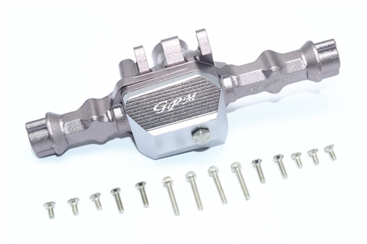 This is the GPM Racing Gunmetal Aluminum Rear Axle Housing & Gearbox for Traxxas TRX-4 scale trucks and rock crawlers. These are made of 6061-T6 aluminum and anodized for a brilliant finish. They are durable and help your truck stand out on the trails.