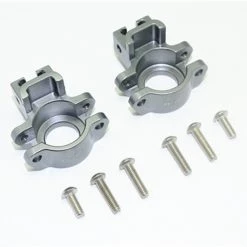 This is a pair of GPM Racing Gunmetal Aluminum Rear Axle Hubs for the Traxxas Unlimted Desert Racer trucks. Made of 6061-T6 aluminum and with an anodized finish, these look great and are super durable. Mounting hardware is included.