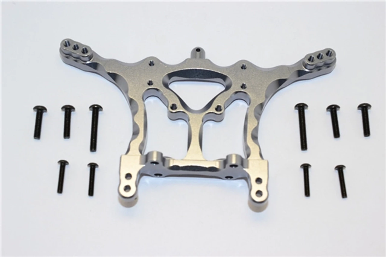 This is the GPM Racing Gunmetal Aluminum Rear Shock Tower for Traxxas electric Stampede 2WD, Slash 2WD, Rustler 2WD, and Bandit vehicles. These are machined from 6061-T6 aluminum and anodized with a beautiful finish. Mounting hardware is also included.