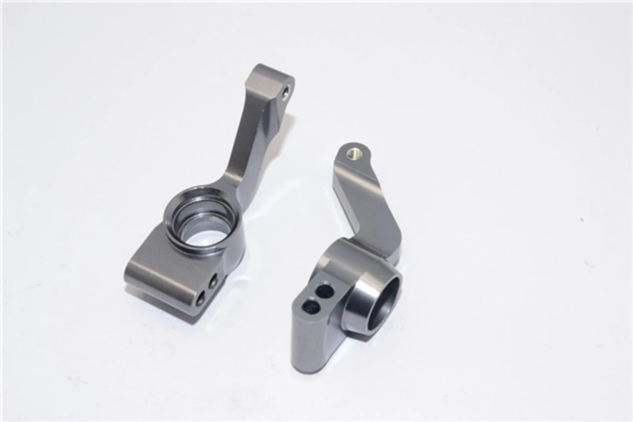 These are the GPM Racing Gunmetal Aluminum Rear Stub Axle Carriers for Traxxas 1/10 Slash 4×4, Rustler 4×4, Stampede 4×4, 1/10 Rally, Telluride, and others (see below). Made of 6061-T6 aluminum and anodized for a spectacular finish, these are a great way to improve performance and dress up your truck at the same time.