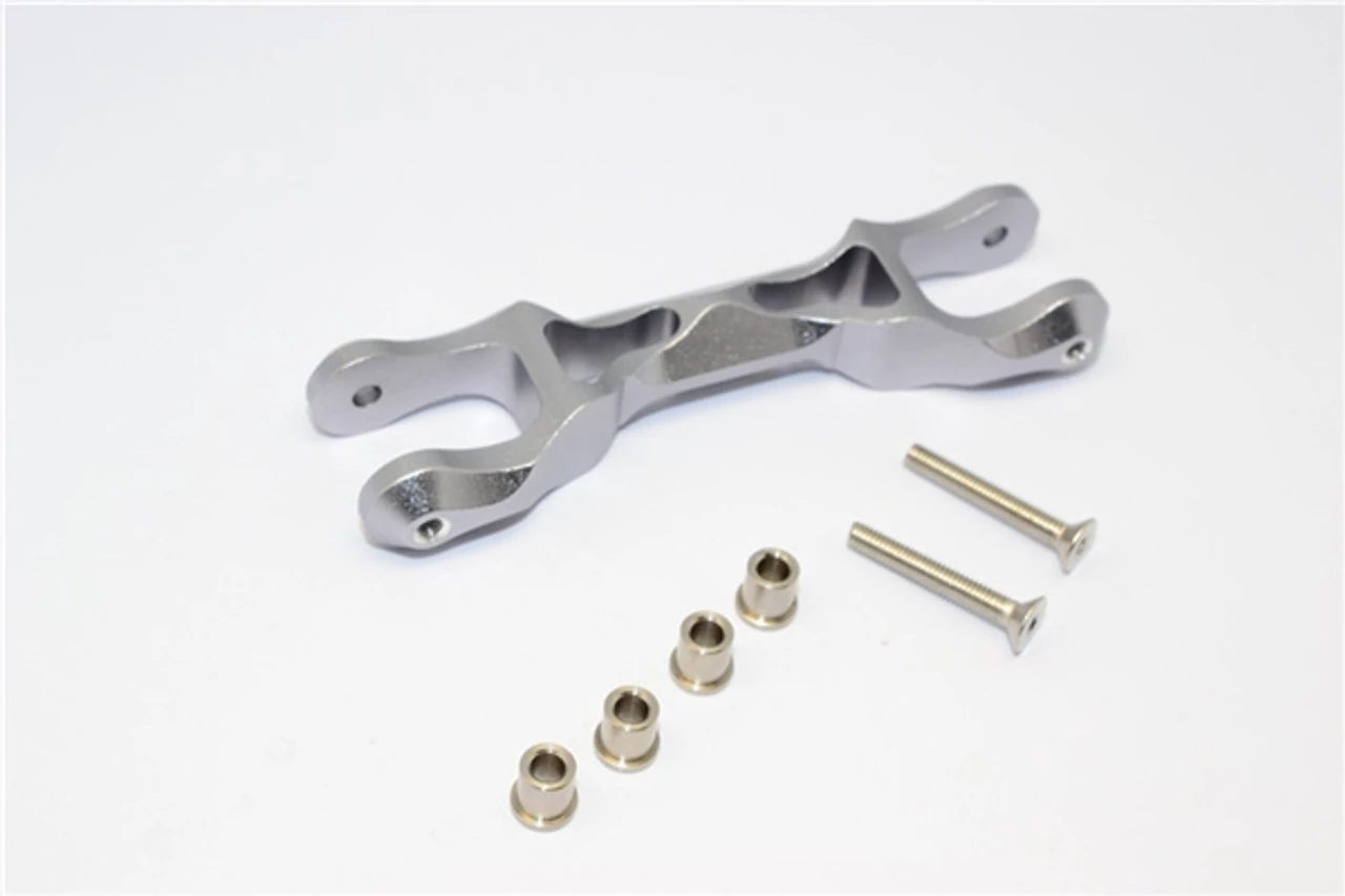 This is the GPM Racing Gunmetal Aluminum Steering Rack Center Draglink Brace for Traxxas X-Maxx trucks. Made of 6061-T6 aluminum with an anodized finish, these are super durable, reduce flex, and look awesome!