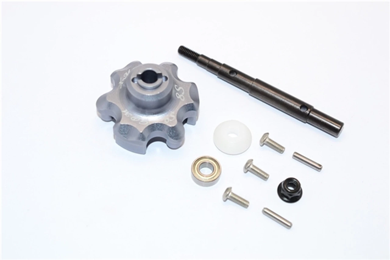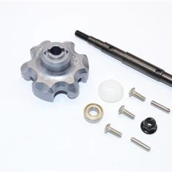 This is the GPM Racing Gunmetal Aluminum Transmission Cush Drive Slipper Eliminator and Input Shaft for Traxxas X-Maxx 6S and 8S trucks. This part directly links the spur gear to the transmission input shaft, taking out all cushion from the cush drive or slipper clutch. While it gives the full, immediate power at all times, it is recommended for experienced users!
