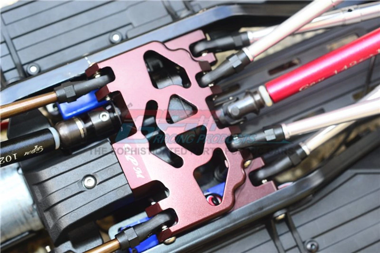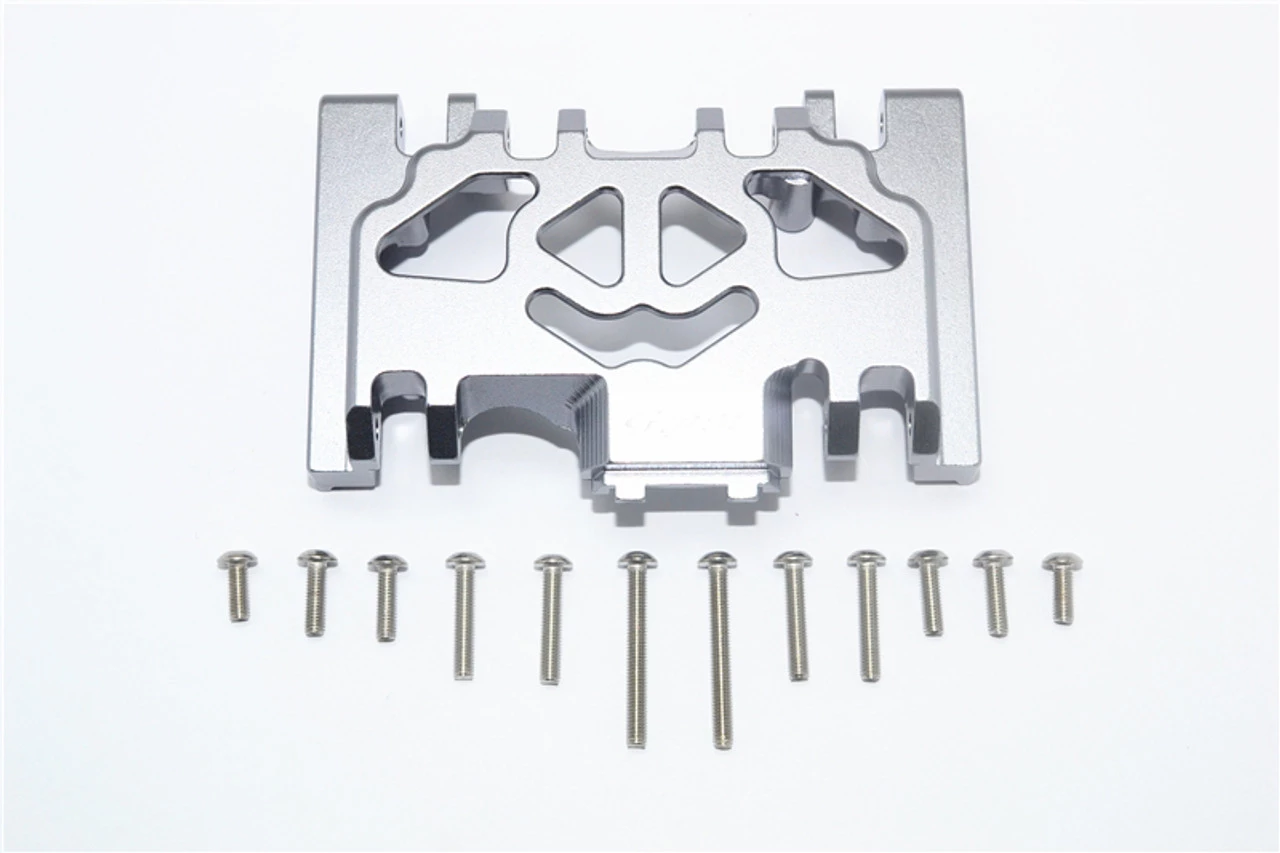 This is the GPM Racing Gunmetal Aluminum Lower Gearbox/Transmission Skid Plate for Traxxas TRX-4 scale trail trucks and rock crawlers. Made of 6061-T6 aluminum, these help protect the bottom of the center gearbox in even the roughest terrain. Stainless steel hardware is included.