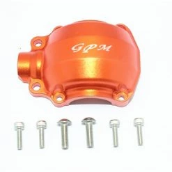 This is the GPM Racing Orange Aluminum Front Differential Housing for Traxxas Unlimited Desert Racer trucks. Made of 6061-T6 aluminum and anodized in color, these look great and help reduce flex in the differential, preventing damage to the gears.