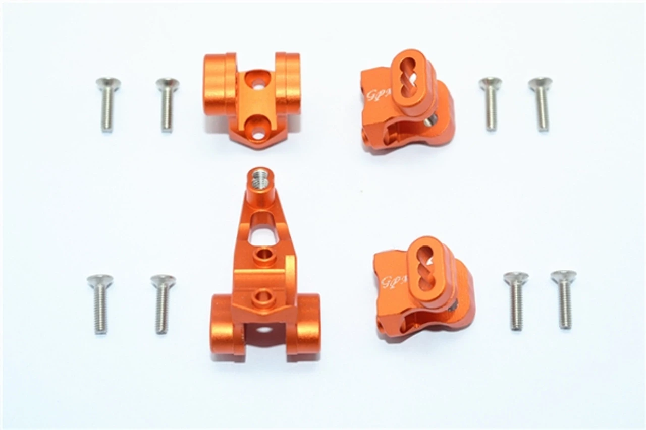 This is the GPM Racing Orange Aluminum Front and Rear Axle Mount Set for Suspension Links on Traxxas TRX-4 scale trail trucks and rock crawlers. Made of 6061-T6 aluminum, these are durable and look great with their anodized finish. They feature multiple mounting points for the suspension links and shocks. Stainless steel hardware is included.