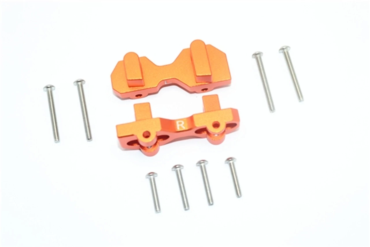 These are the GPM Racing Orange Aluminum Front Shock Mounts for Traxxas Unlimited Desert Racer trucks. Made of 6061-T6 aluminum, these are strong and look great installed. The shocks can be mounted to inside or outside of this mount to adjust the angle of the shocks as desired. Stainless steel mounting hardware is included.