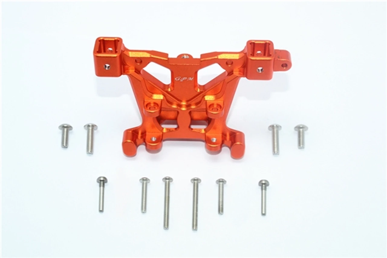 This is the GPM Racing Orange Aluminum Rear Body Post Mount Set for Traxxas 1/10 E-Revo 2.0, E-Revo Brushed & Brushless, Revo 3.3, Slayer, and Summit trucks. Made of 6061-T6 aluminum, this mount is super tough and looks stunning with its anodized finish.