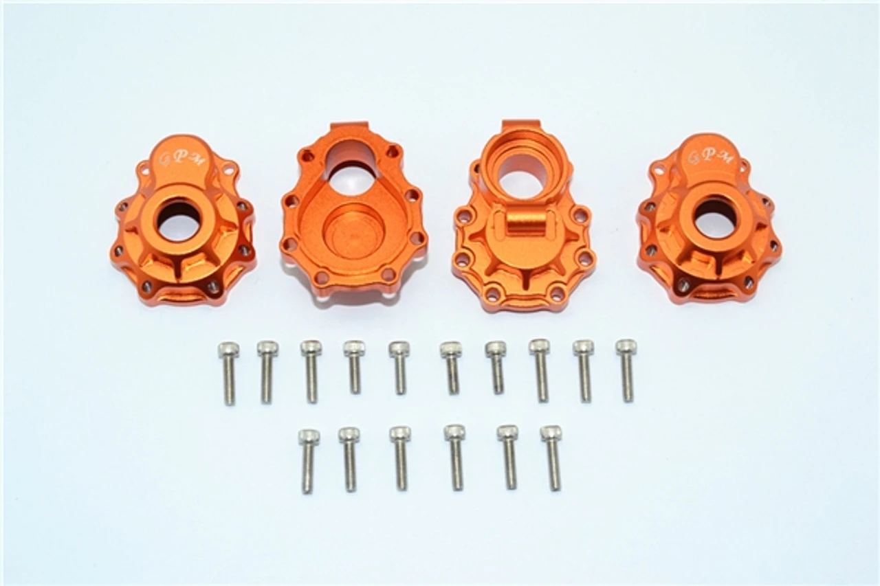 These are the GPM Racing Orange Aluminum Rear Inner & Outer Portal Drive Housings for Traxxas TRX-4 scale trucks and rock crawlers. Made of 6061-T6 aluminum, these are much more rigid than stock and will help keep your portal gears meshing perfectly to prevent damage to the gears. Stainless steel hardware is also included.