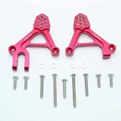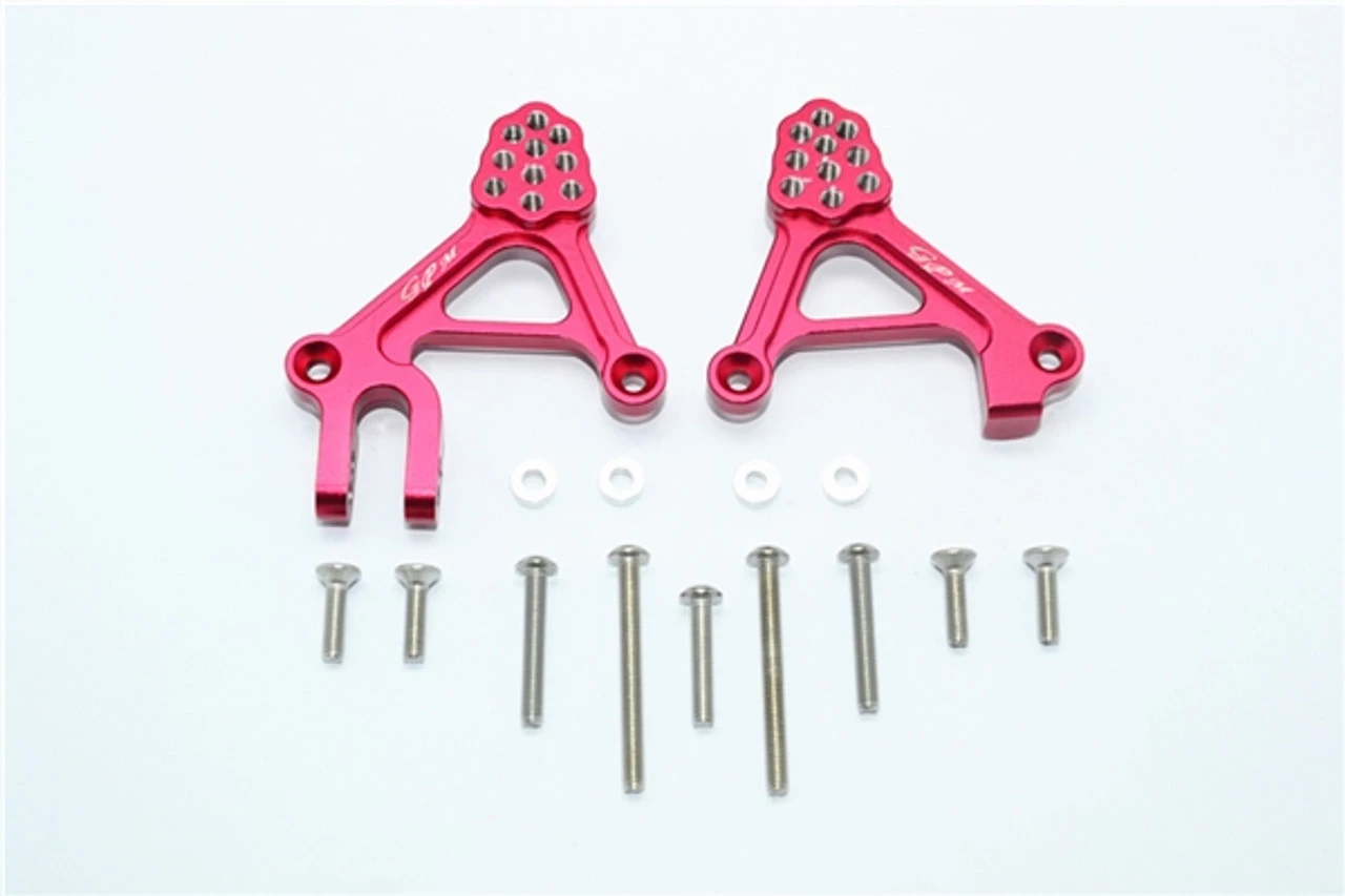 These are the GPM Racing Red Aluminum Adjustable Front Shock Tower Mounts for Traxxas TRX-4 scale trail trucks and rock crawlers. These work with trucks such as the TRX-4 Land Rover Defender, Sport, and Tactical versions. Made of 6061-T6 aluminum, these are durable, offer additional suspension setup options, and look great! Stainless steel mounting hardware is included.