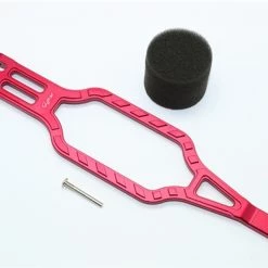 This is the GPM Racing Red Aluminum Battery Hold Down for the Traxxas TRX-4 scale crawlers and the 4-Tec 2.0 cars. Made of 6061-T6 aluminum with an anodized finish, these look great. Unlike the stock straight battery hold down, these feature an opening to allow running 7-cell hump pack batteries if you want to run those as well.