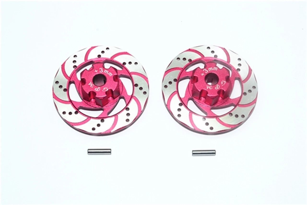 These are the GPM Racing Red Aluminum Brake Disks with +3mm Offset Hex for Traxxas Unlimited Desert Racer trucks. These feature a silver disk surface for ultra-realistic looks. Made of 6061-T6 aluminum and anodized with a color finish, these look incredible. They are also much stronger than the stock plastic hexes. Run these with a set of the GPM aluminum brake calipers for the ultimate show machine!
