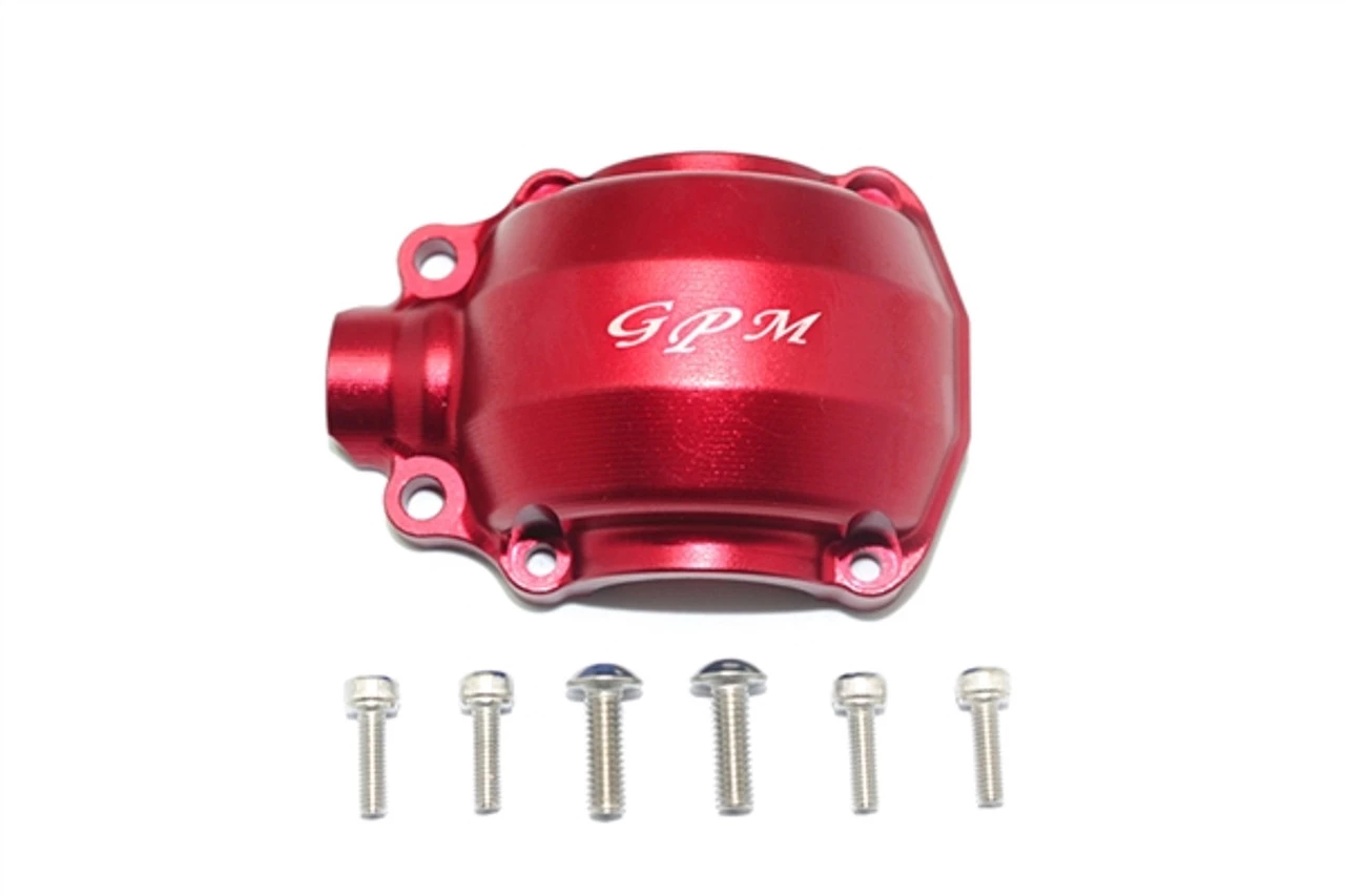 This is the GPM Racing Red Aluminum Front Differential Housing for Traxxas Unlimited Desert Racer trucks. Made of 6061-T6 aluminum and anodized in color, these look great and help reduce flex in the differential, preventing damage to the gears.