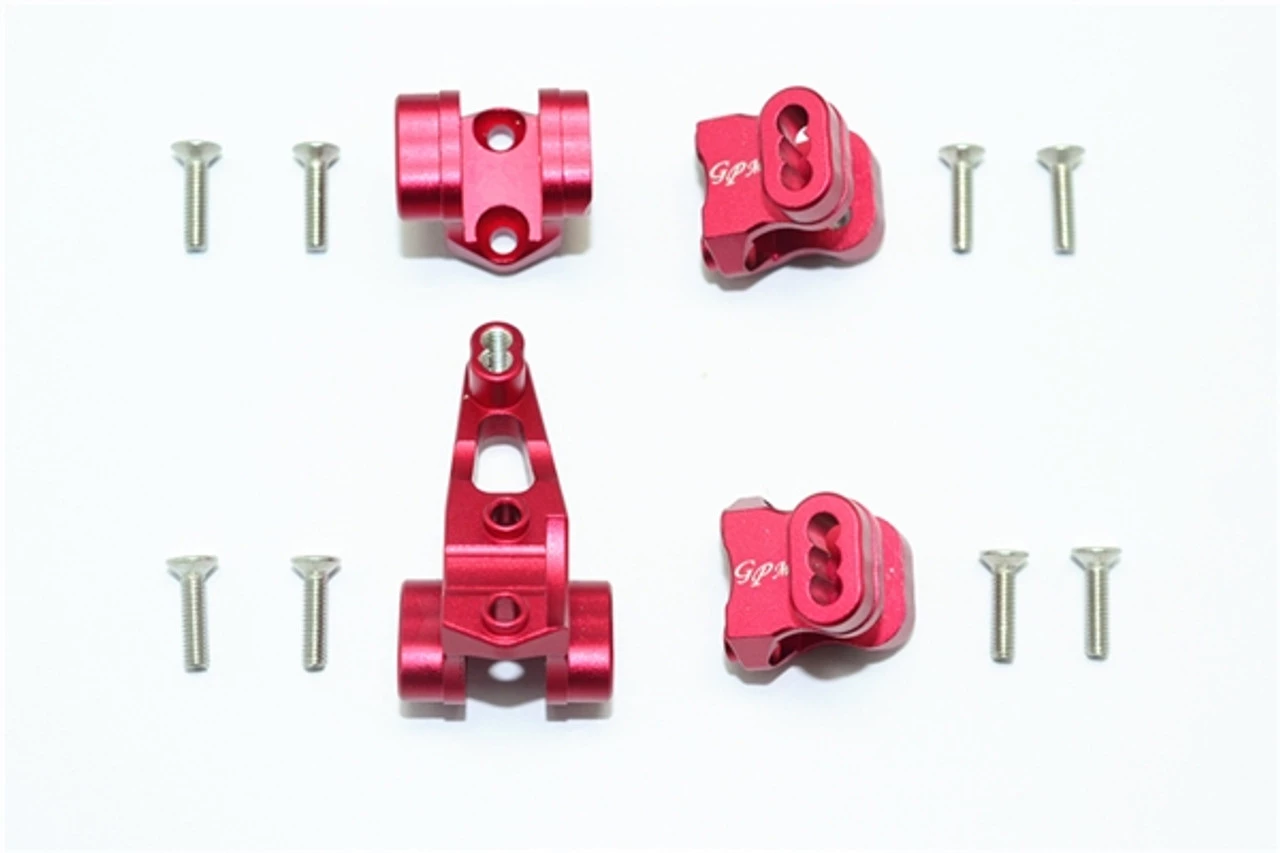 This is the GPM Racing Red Aluminum Front and Rear Axle Mount Set for Suspension Links on Traxxas TRX-4 scale trail trucks and rock crawlers. Made of 6061-T6 aluminum, these are durable and look great with their anodized finish. They feature multiple mounting points for the suspension links and shocks. Stainless steel hardware is included.