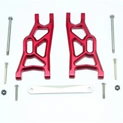 These are the GPM Racing Red Aluminum Front Suspension Arms for Traxxas Slash 2WD, Rustler 2WD, and Stampede 2WD trucks. Made of 6061-T6 aluminum and anodized for a great looking finish, these are tough and help make your truck stand out. Hinge pins and mounting hardware are included.
