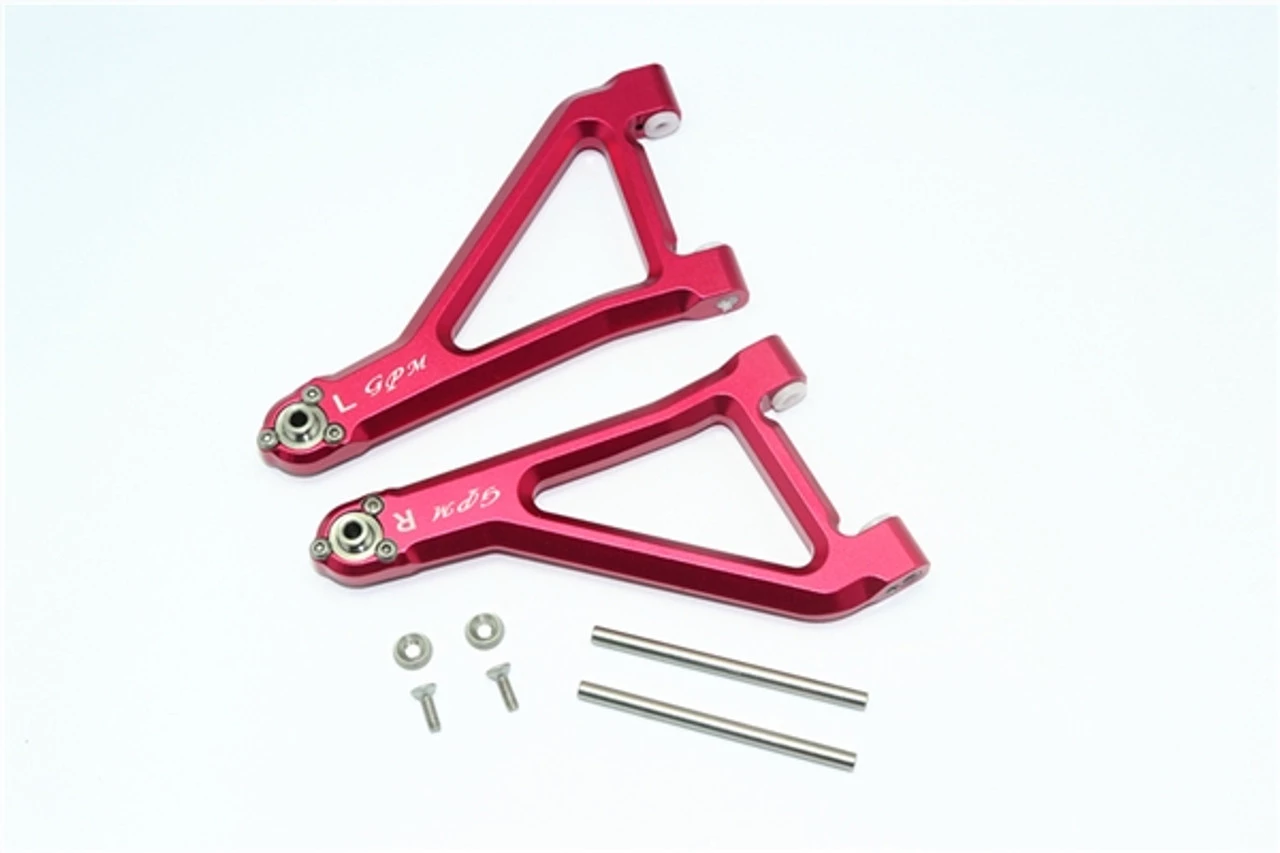These are the GPM Racing Red Aluminum Front Upper Suspension Arms for Traxxas Unlimited Desert Racer trucks. Made of 6061-T6 aluminum, these arms are incredibly durable and add to the UDR’s ultra-realistic appearance. These come with a pre-installed hollow ball in each arm, as well as new stainless steel hinge pins.