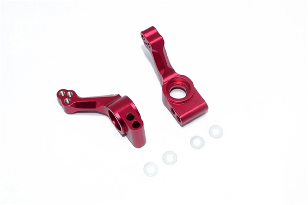 These are the GPM Racing Red Aluminum Rear Stub Axle Carriers for Traxxas electric Slash 2WD, Stampede 2WD, Rustler 2WD, and Bandit vehicles. Made of 6061-T6 aluminum with an anodized finish, these are durable and look awesome!